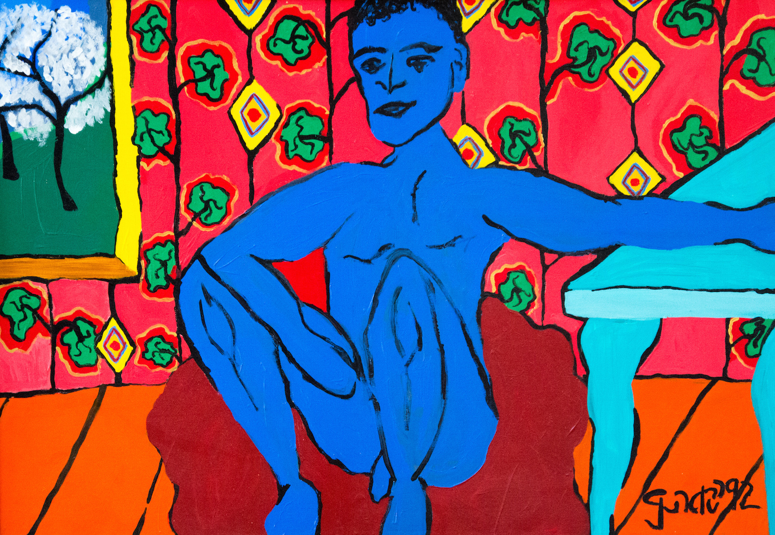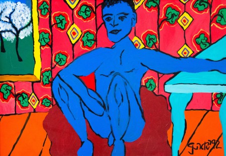 youth with turquoise table 1992 h 70 x w 100 cm