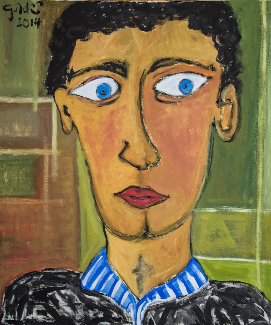boy with striped shirt 2014 h 70 x w 60 cm