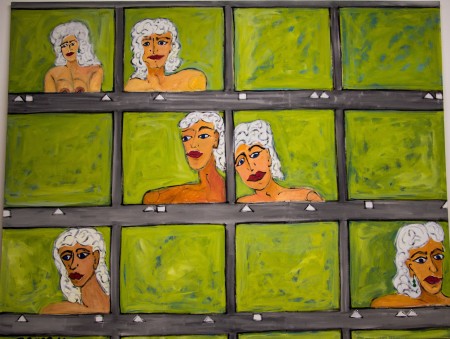 woman with flower and bird 2015 h 158 x w 195 cm